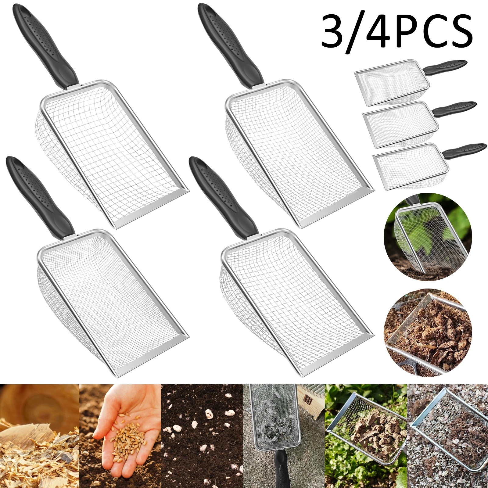 3/4Pcs Gardening Soil Sifters Stainless Steel Sand Soil Compost Sifter with Handle High Efficient Sieve Sifter Potting Scoop