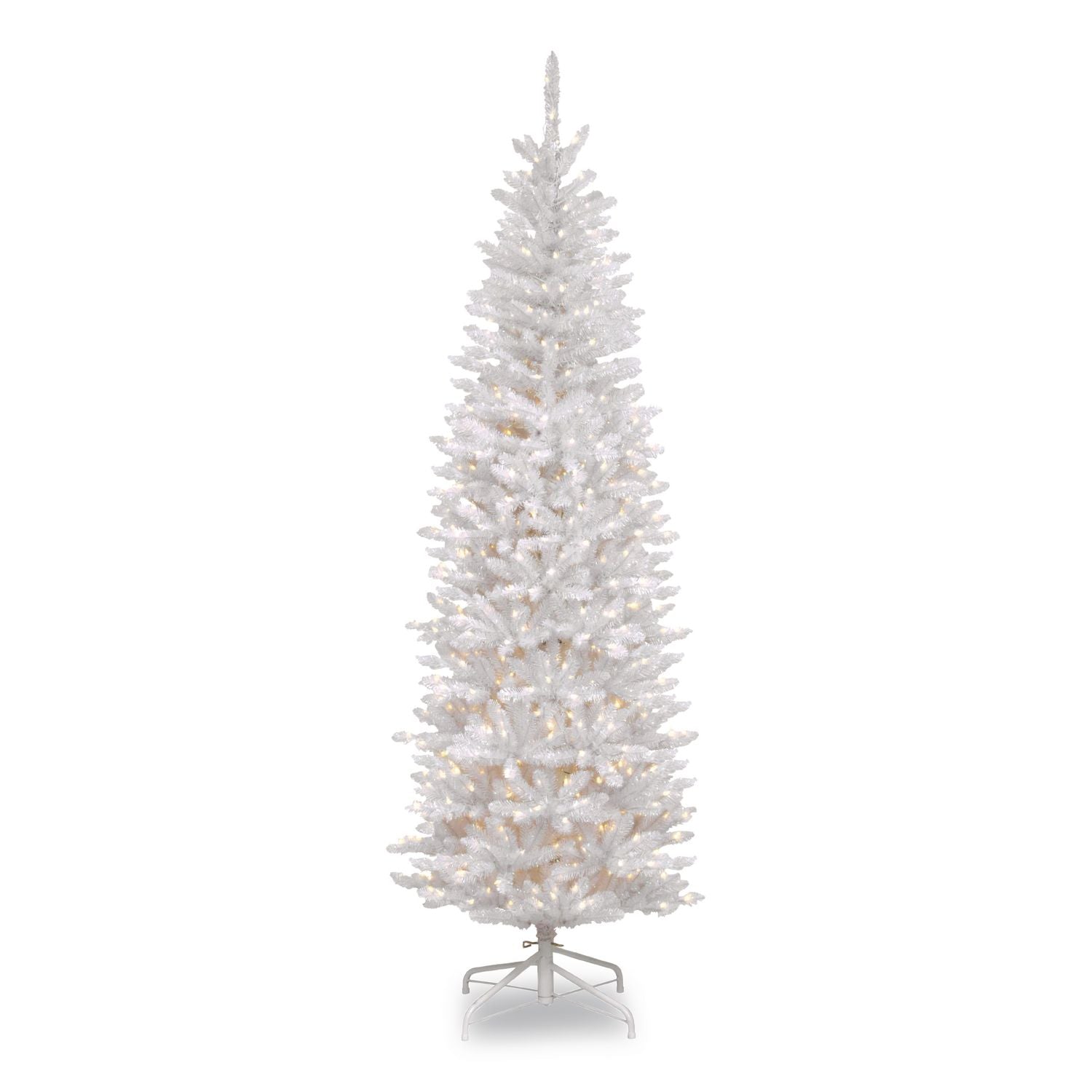 National Tree Company Pre-Lit Kingswood Fir Pencil Tree, 28" x 28" x 78", White Tree, White Tree Stand (NTTKWW730065)