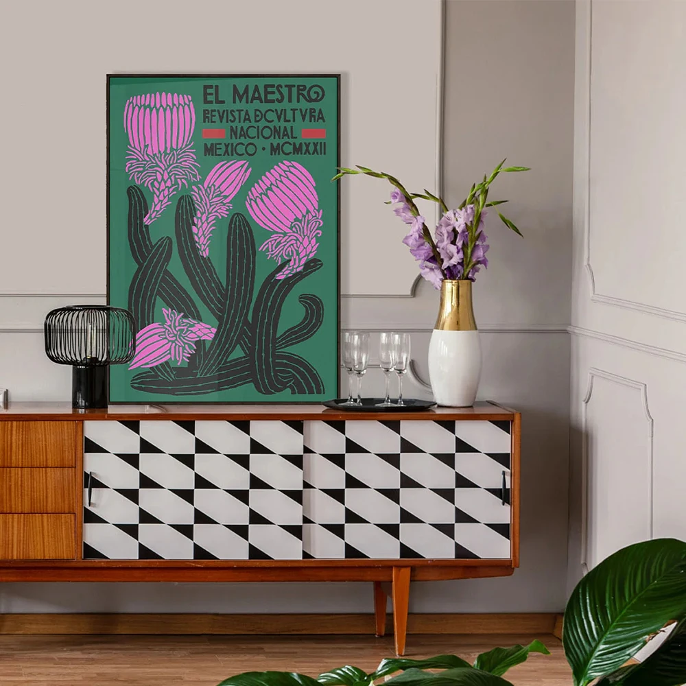 Eclectic El Maestro Mexico Poster. Blooming Cactus Vintage Mexican Culture Posters For Living Room Bedroom Home Decor