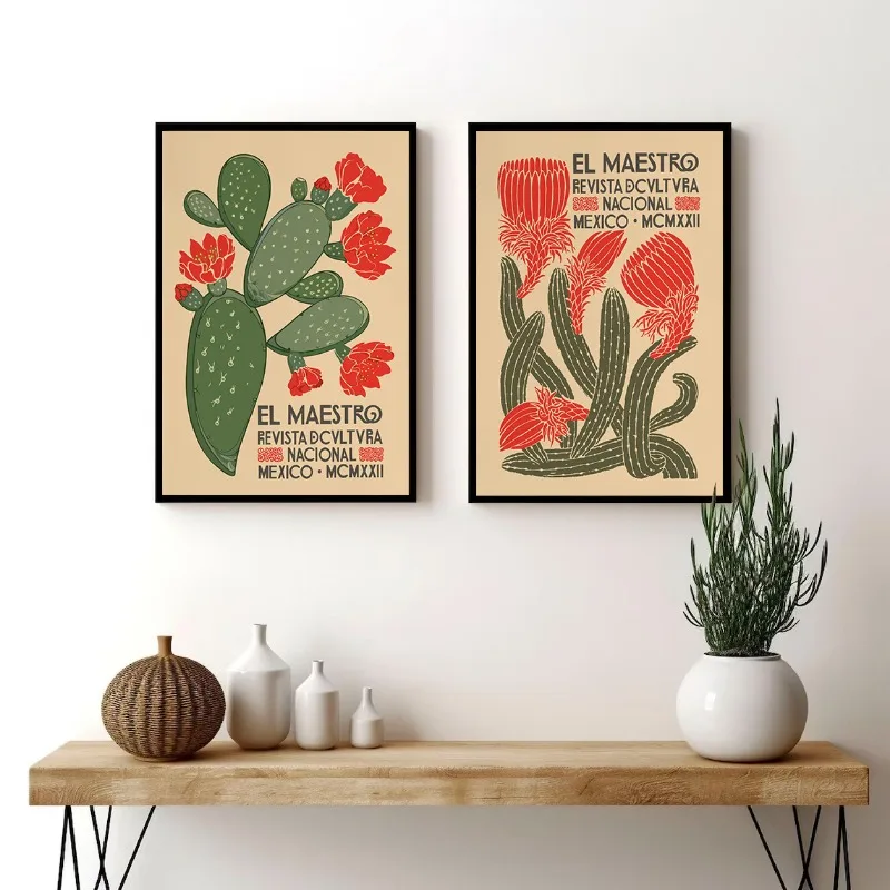 El Maestro Mexican Culture Exhibition Vintage Floral Cactus Posters Prints Canvas Painting Wall Art Picture Living Room Decor  Read more
