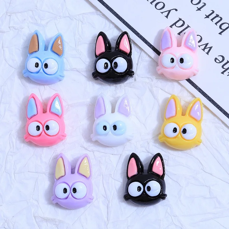 10Pcs New Mini Cute Cartoon Cat Heads in Various Colors Flat Back Resin Cabochons DIY Jewelry Craft Decoration Accessorie  Read more