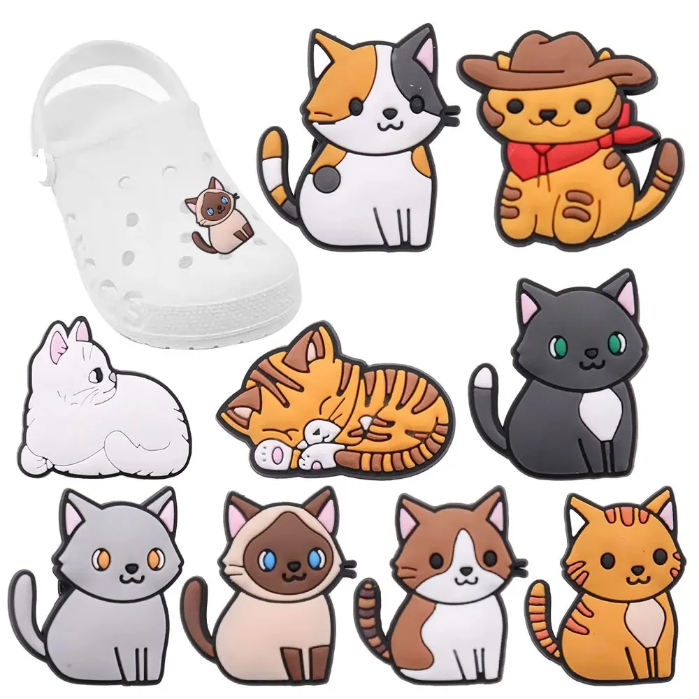 Good Quality 1pcs PVC Shoe Charms Animal Cute Orange Cat White Cat Accessories Kids Shoes Ornament Fit Kids DIY Party Gift