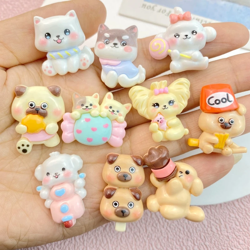 10 Pcs New Cute Cartoon Dog Series Flat Back Resin Scrapbooking DIY Jewelry Hairpin Craft Decoration Accessorie