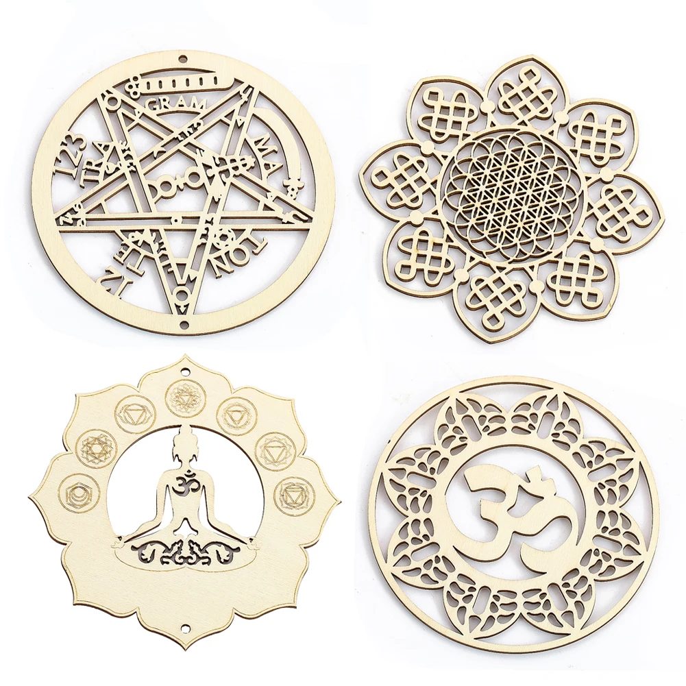 Mandala Sacred Geometry Hanging Wooden Flower Life Wall Art Spiritual Yoga Meditation Chakra Crystal Grid Decor Board Coaster