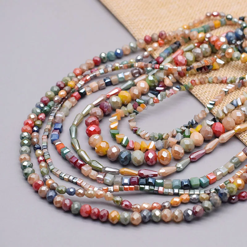 2 3 4 6 8mm Triangle Cube Water Drop Strawberry Rondelle Crystal Glass Beads Faceted Loose Spacer Glass Beads for Jewelry Making