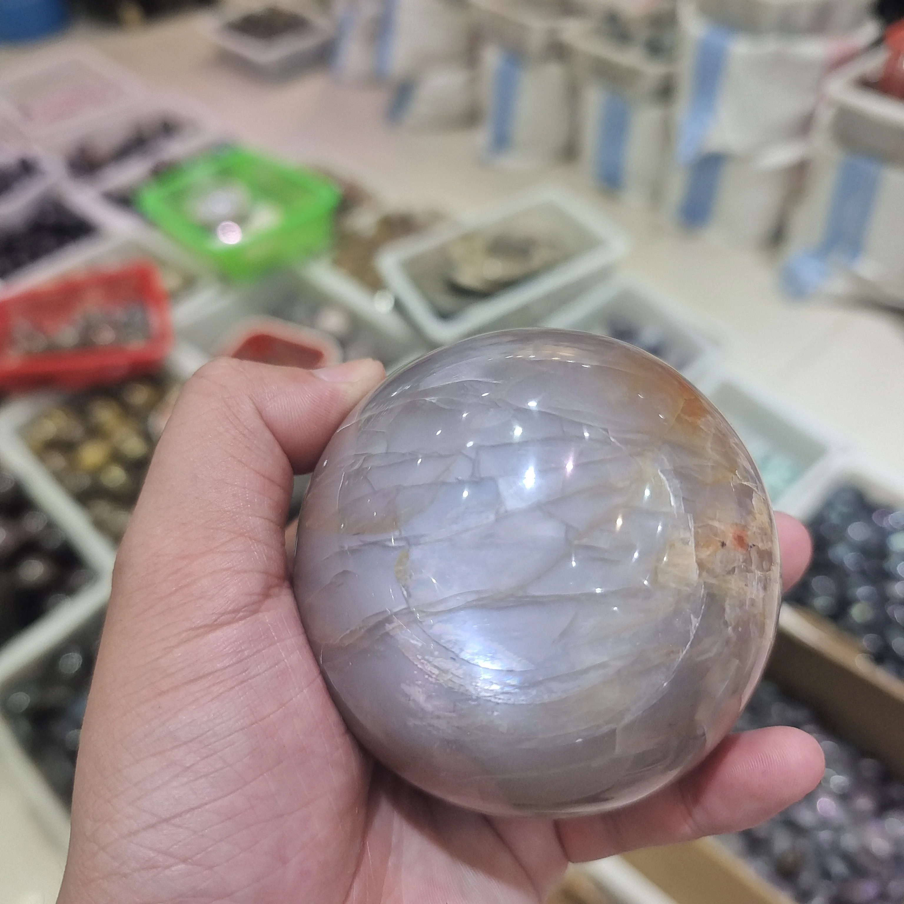 Natural Gemstone Orange Moonstone Ball Cat eye Glow Home Room Office Decor Spiritual Meditation Witch Altar Crystal HealingStone
