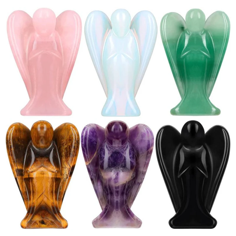 New 1.5" Angel Statue Stone Carving Natural Gemstone Crystal Reiki Healing Figurine Home Decoration Trinket Craft Christmas Gift