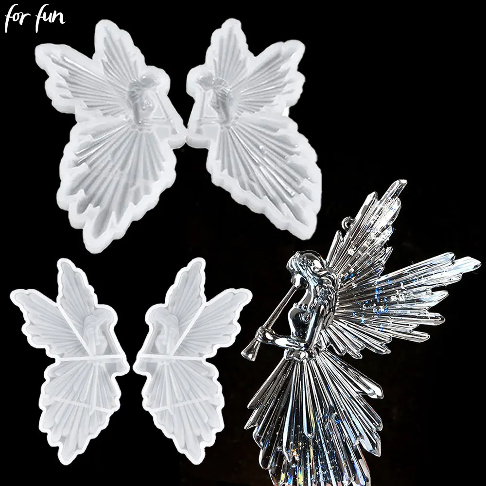 For Fun Left and Right Blowing Flute with Wings Angel Girl Silicone Molds DIY Crystal Epoxy Resin Mold Fairy Mold Decoration  Read more