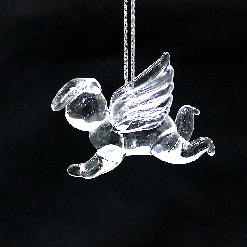 Clear Murano Glass Angel Pendant Transparent Mini crystal Christmas Charm Ornaments Home Window Xmas Tree Hanging Decor Supplies
