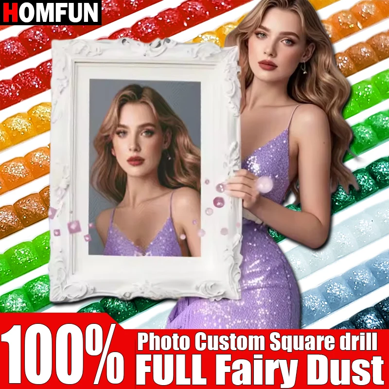 HOMFUN 100% Full Fairy Dust Square Drill Custom Picture Resin Drill Embroidery Diamond Painting Handmade Cross Stitch gift  Read more
