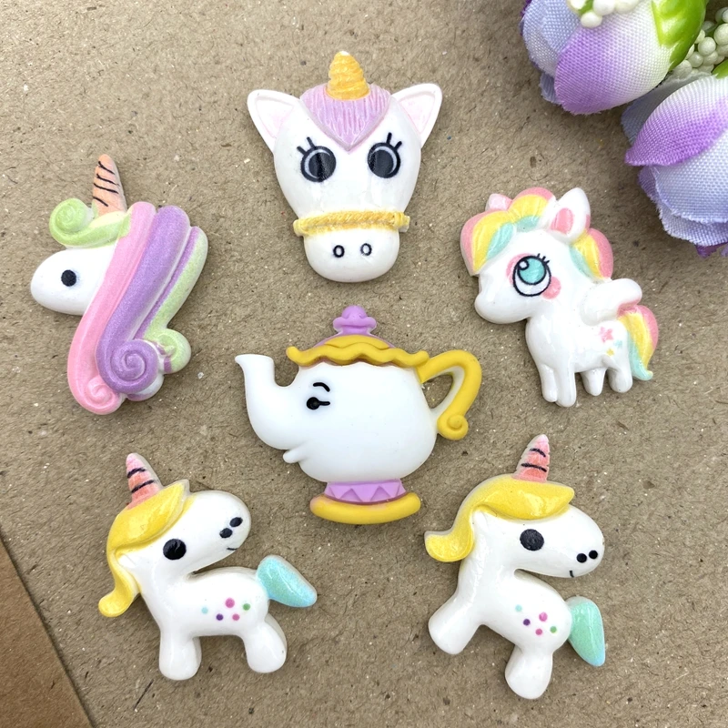 10pcs Flat back Resin cartoon Unicorn Children send hair clips Miniature Pattern Applique DIY Home Decor Scrapbook Craft