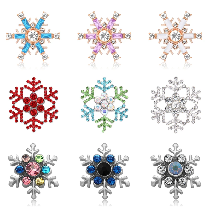 New Beauty Winter Snowflake Crystal rhinestone Christmas metal 18MM snap buttons colorful fit DIY snap jewelry Findings  Read more