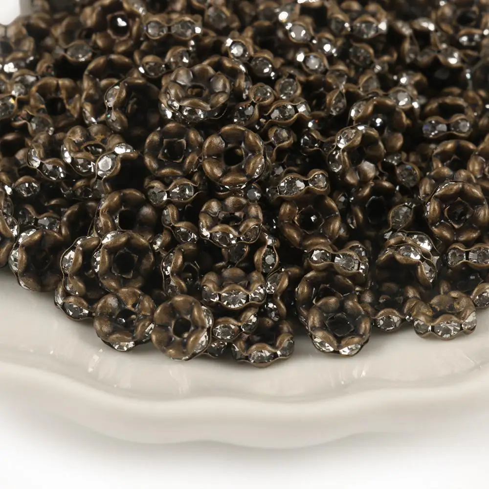 50pcs Bronze Wave Side Metal Rhinestone Rondelle Austiran Crystal Big Hole Loose Spacer Beads For Jewelry Making DIY Supplies