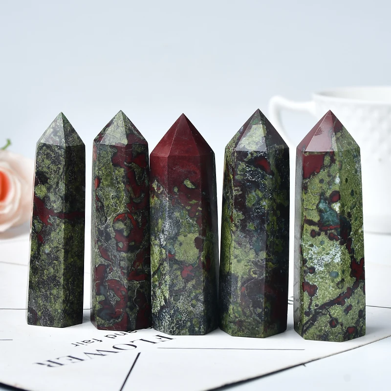 1PC Natural Dragon Blood Stone Crystal Point Reiki Healing Stone Hexagonal Prisms Obelisk Wand Tower Energy Meditation DIY Gift  Read more