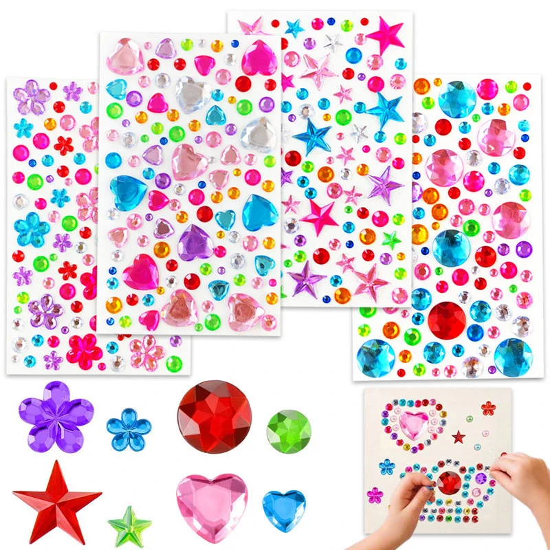 4-8Sheets 3D Gem Acrylic Crystal Stickers Kids DIY Decoration Self Adhesive Jewel Crafts Sparkly Rhinestone Stickers Girls Gifts