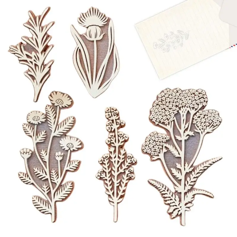 Plant Stamp Decorative Vintage Flower 5pcs Wood Stamps Exquisite Flower And Plant Stamps Set For Walls Cardboard Fabric  Read more
