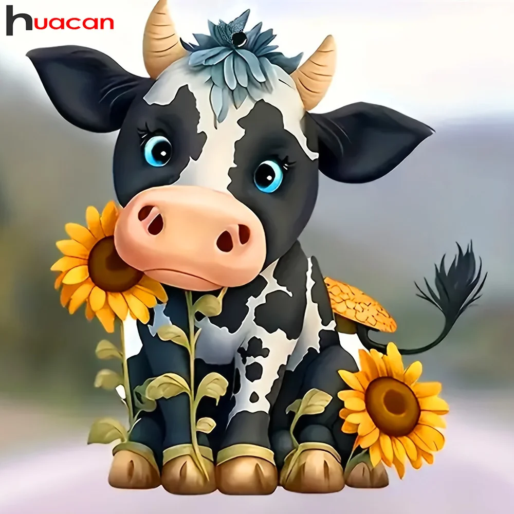 Huacan Diy Diamond Mosaic Animal Cow 5D Diamond Embroidery Flower Handmade Gift Set Decorative Paintings