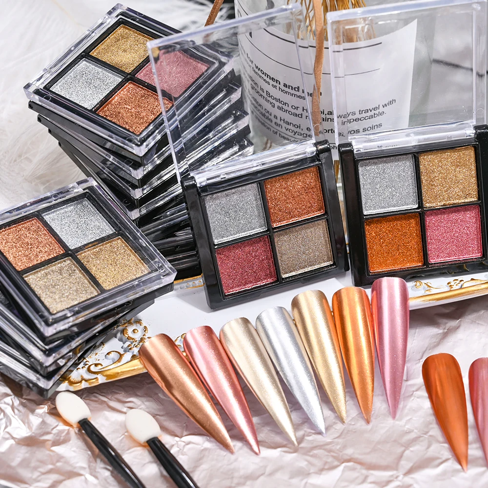 1/4Colors Y2K Metallic Solid Mirror Glitter Powder Laser Gold/Silver Rubbing Glitter Pigment HOLO UV Gel Polish Mirror Powder