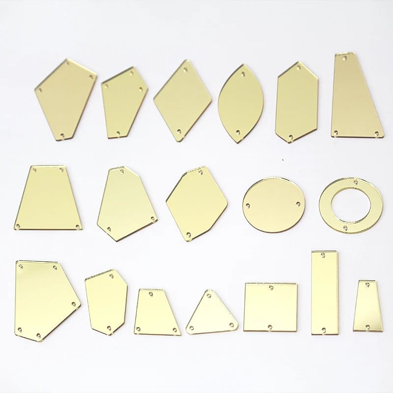 100pcs quality GOLD mix size and shape color mirror acrylic sew on rhinestones with holes acryl flat back mirror crystal beads