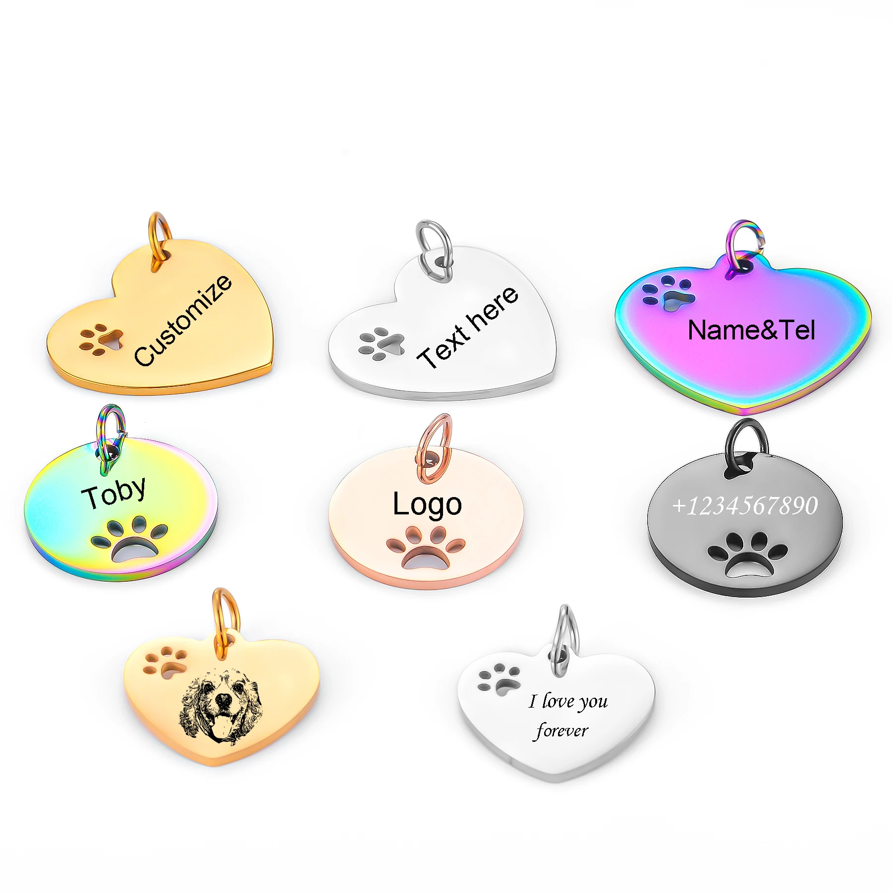 Customized Mirror Polished Hollow Paw Heart Tags Stainless Steel Pendants For DIY Personalized ID/Name/Logo/Text Jewelry