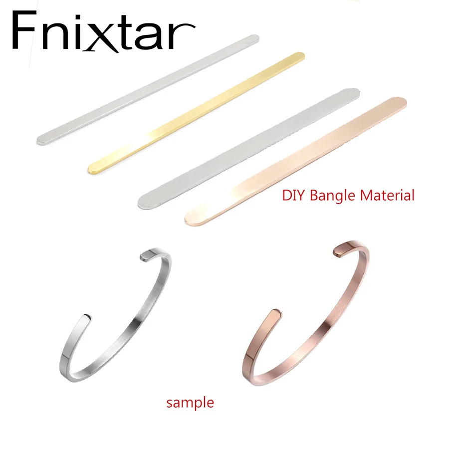 Fnixtar 50Pcs/Lot Stainless Steel Mirror Polished Rectangle Charm Blank Stamping Tag DIY C Open Cuff Bangle 1/2* 6in 1/4*6in