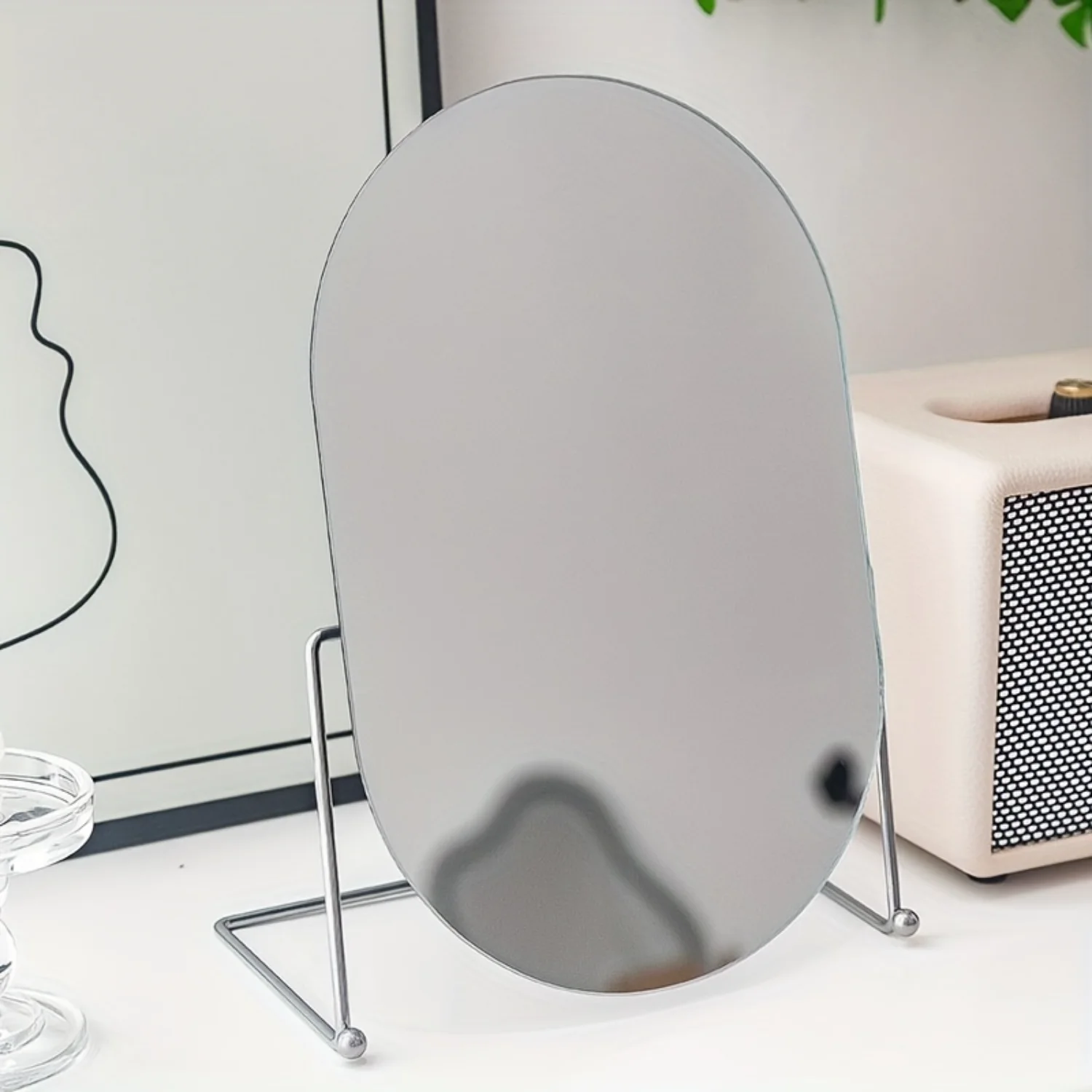 Oval Tabletop Vanity Mirror, 1pc Nordic Style Iron Art Makeup Mirror, Portable Desk Counter Top Mirror for Office, Bathroom Shav