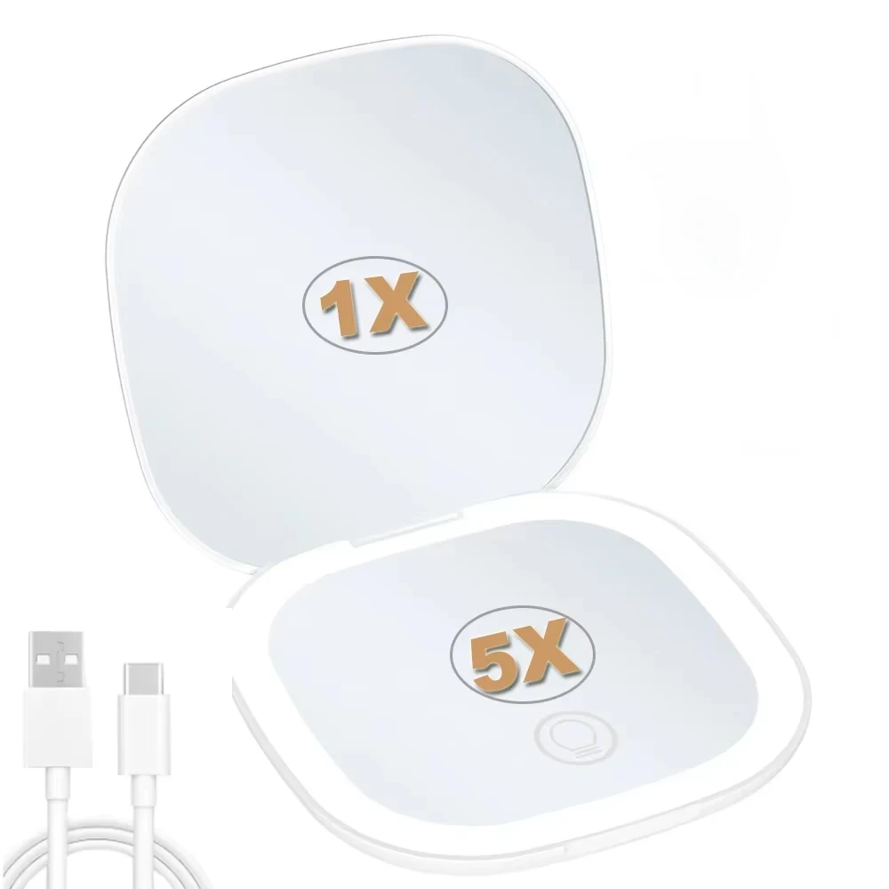 LED Rechargeable 1X/10X Magnifying Cosmetic Vanity Mirror with Lights Compact Portable Travel Dimmable Illuminated for Handbag