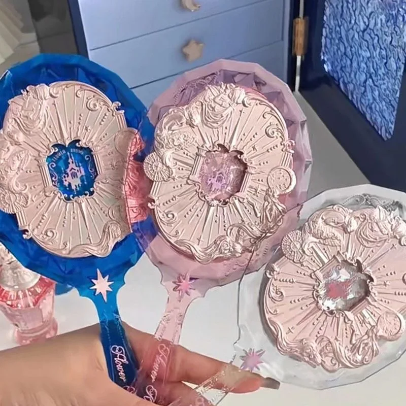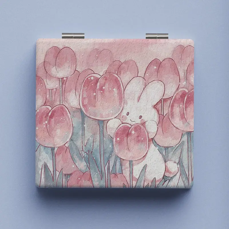 Portable Double-Sided Folding Makeup Mirror Tulip Square Magnifying Mirror Pocket Compact Vanity Handheld Mirror Student Mirrors