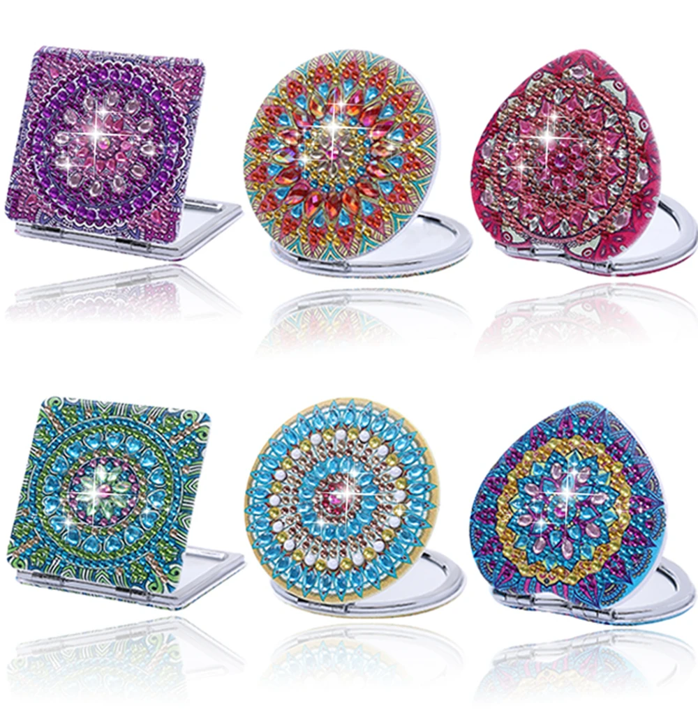 1pc/Set DIY Mandala Diamond Art Compact Mirror Leather Portable Folding Mirror Kit Diamond Painting Pocket Mirror for Adults