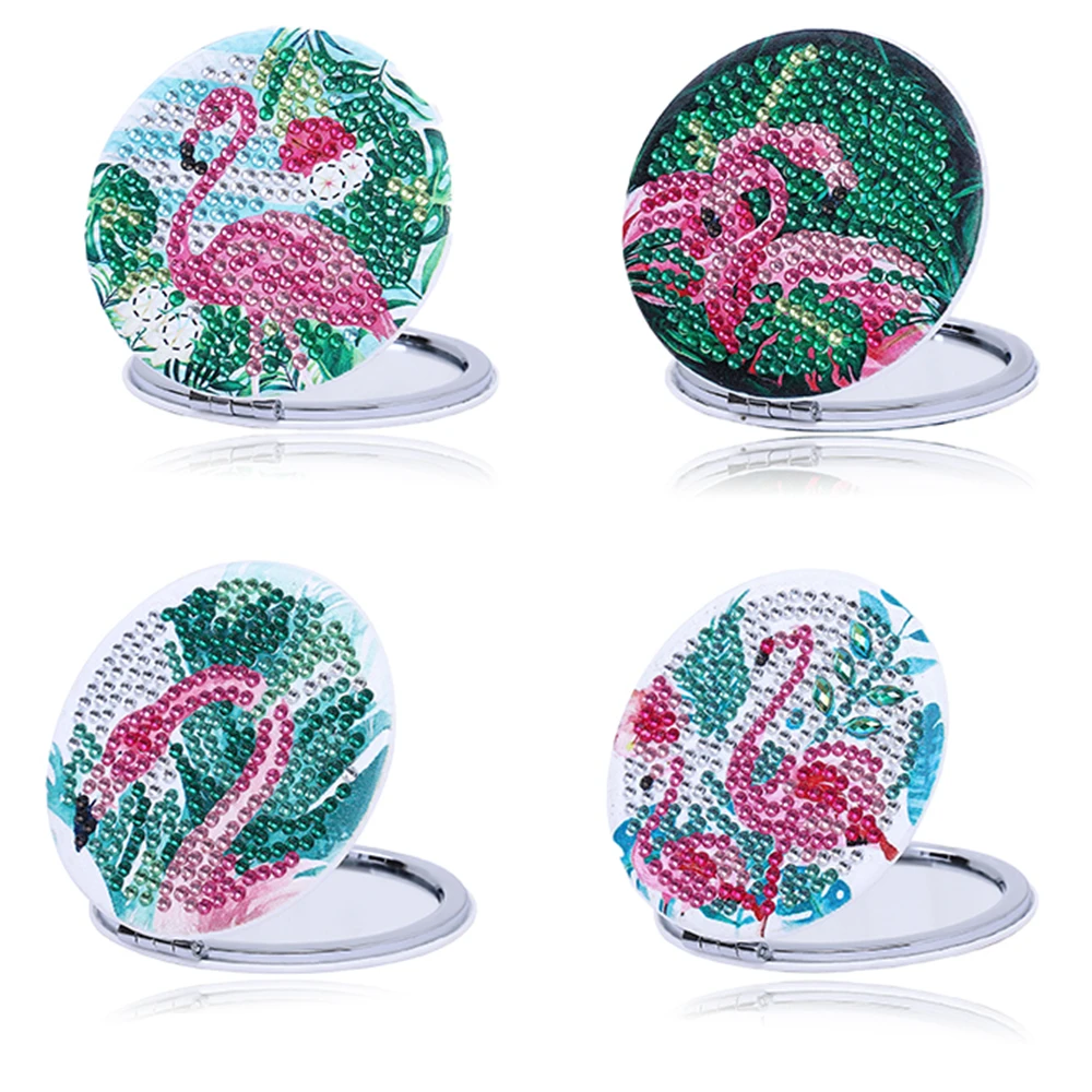 1pc/Set DIY Flamingo Diamond Painting Makeup Mirror Kits Crystal Rhinestones Animal Diamond Art Compact Mirror for Women