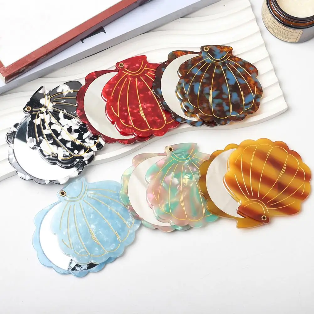 7.5cm Shell Makeup Mirror Portable Travel Acetic Acid Folding Vanity Mirror Lightweight Women Girls Handheld Cosmetic Mirror