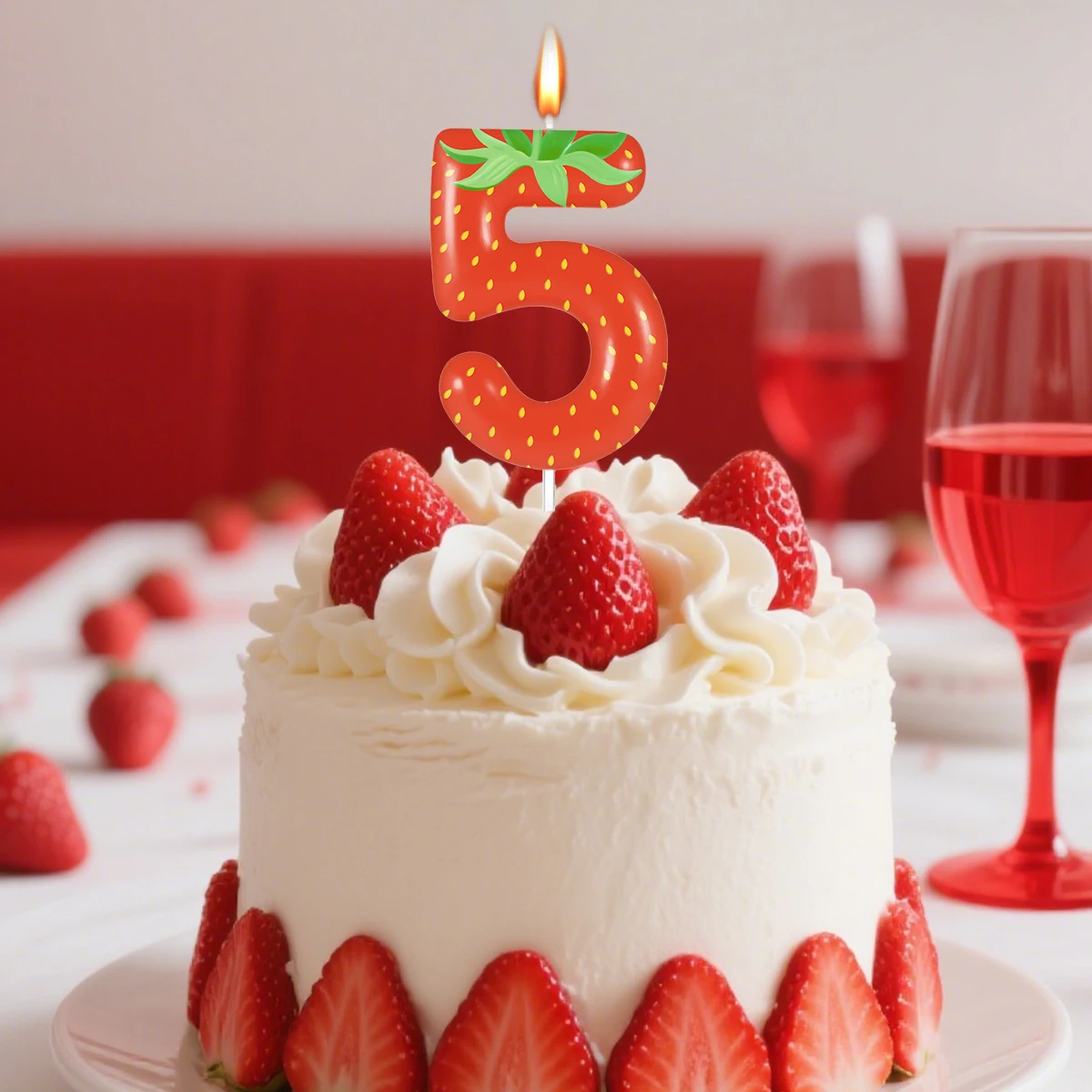 1pc Strawberry Birthday Cake Candle, 0-9 Number Perfect for Anniversary, Birthday & Party Decorations, Celebration Candle