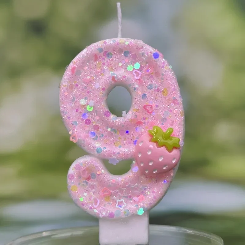 Digital Birthday Candle Cake Party Decoration Birthday Handmade Wax Pink Strawberry Boy and Girl Wedding Number