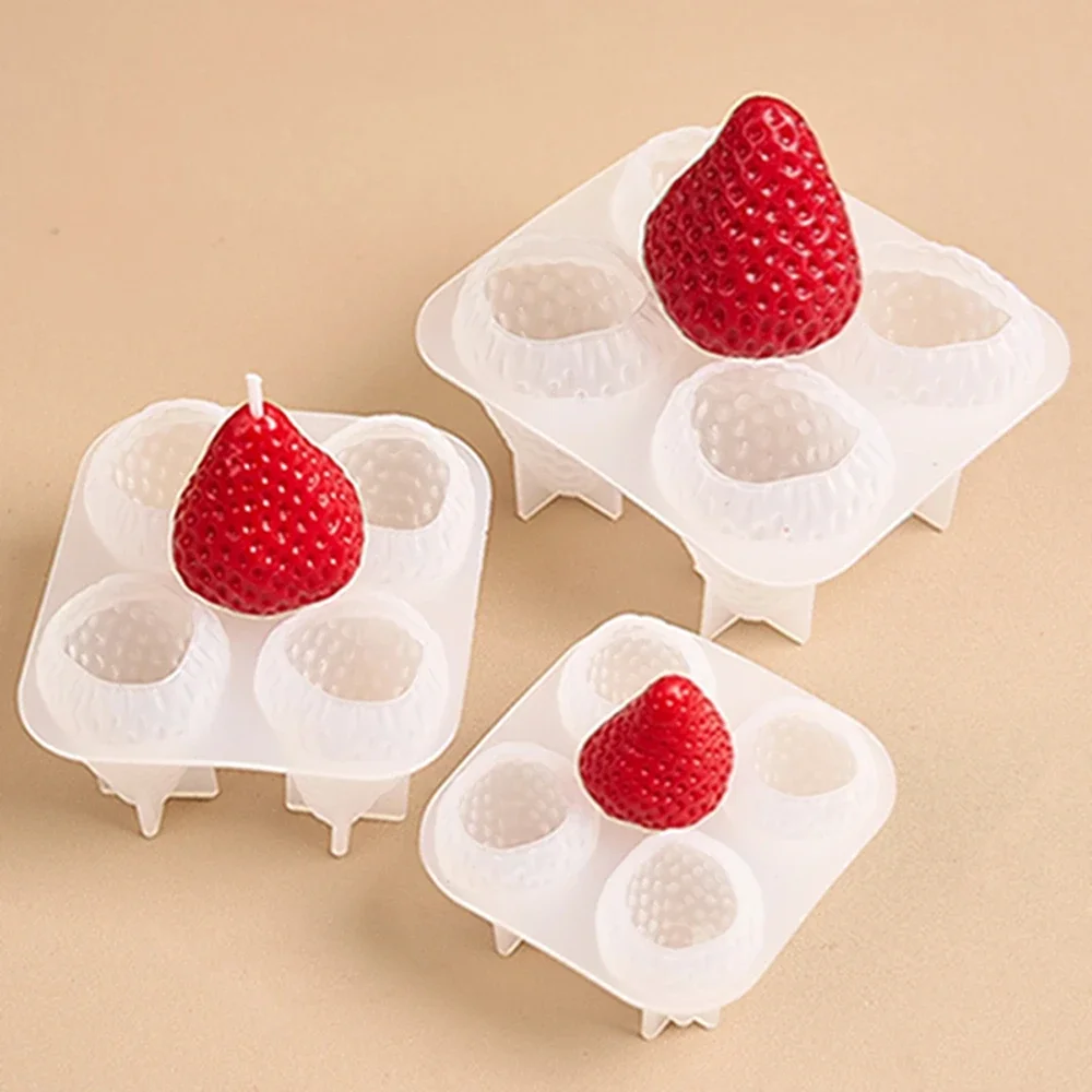 3D Strawberry Aromatherapy Candle Silicone Mold DIY Handmade Romantic Scented Candle & Plaster Craft Molds Valentine's Day Decor