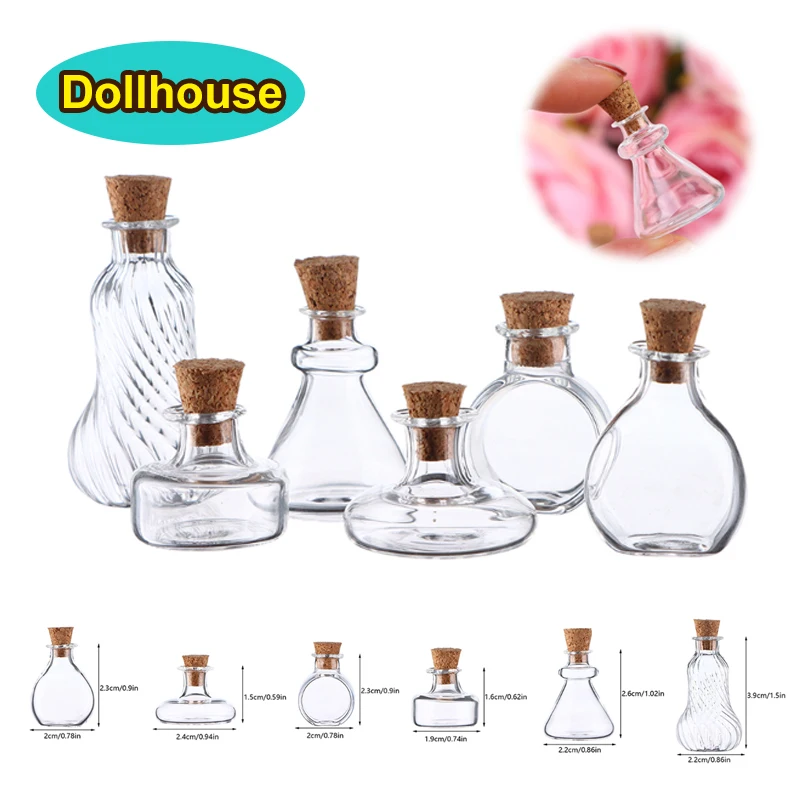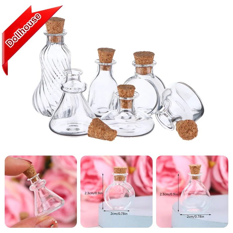 1:12 Dollhouse Miniature Vase Glass Bottle Wishing Bottle Storage Bottle with Cork Vase Candy Jar Model Doll House Decor
