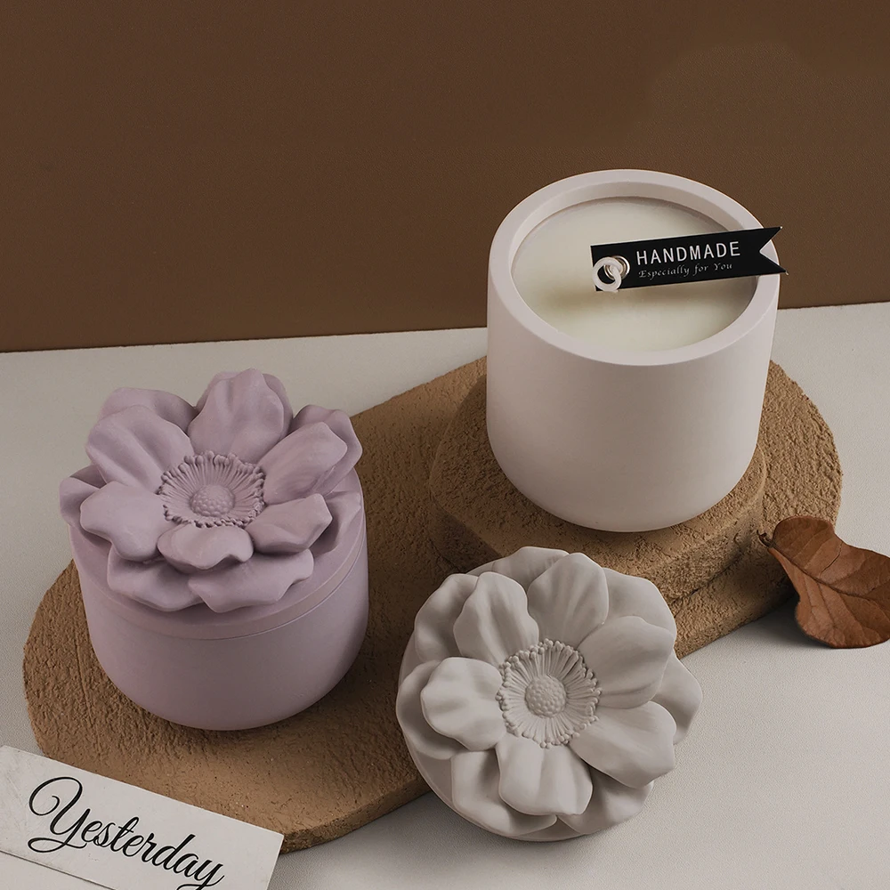 1 Set With Lid Flower Candle Cup Silicone Mold Handmade DIY Cylinder Gypsum Cement Aromatherapy Storage Jar Mold Flowerpot Mould