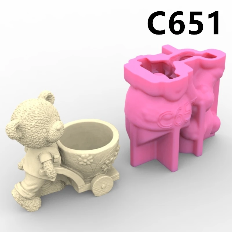 Cowboy Car Bear Vase Flower Pot Ashtray Pen Holder Silicone Mold Making Home Decoration with Epoxy Plaster Cement Handicraft