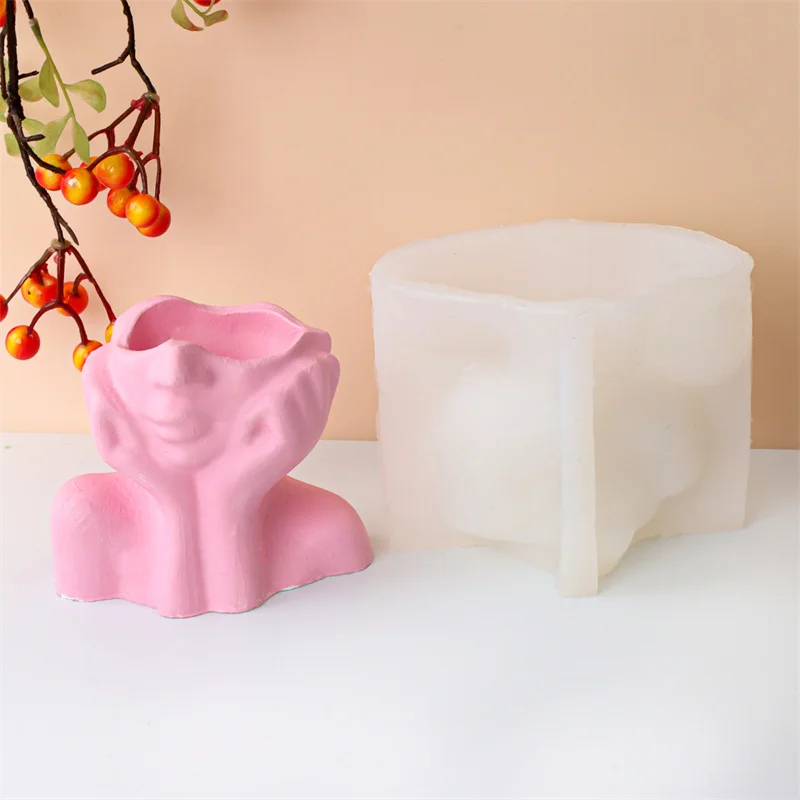 Handmade Girl Head Shaped Flower Pot Silicone Mold DIY Concrete Vase Resin Gypsum Candle Crystal Dropping Glu,Home Decor Supplie