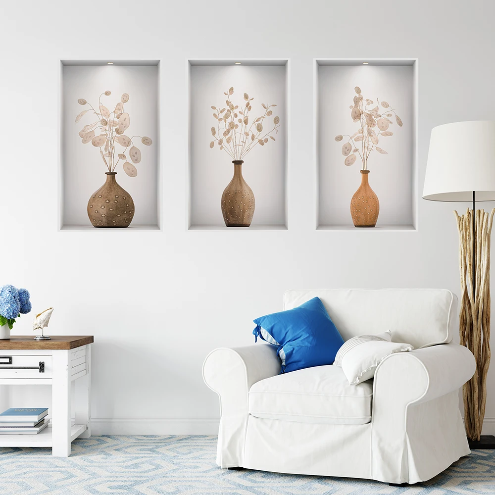 3pcs/set Niche Plant Vase Stickers for Living Room Sofa Background Decorative Painting Bedroom Decor Opaque Wall Posters Decal  Read more