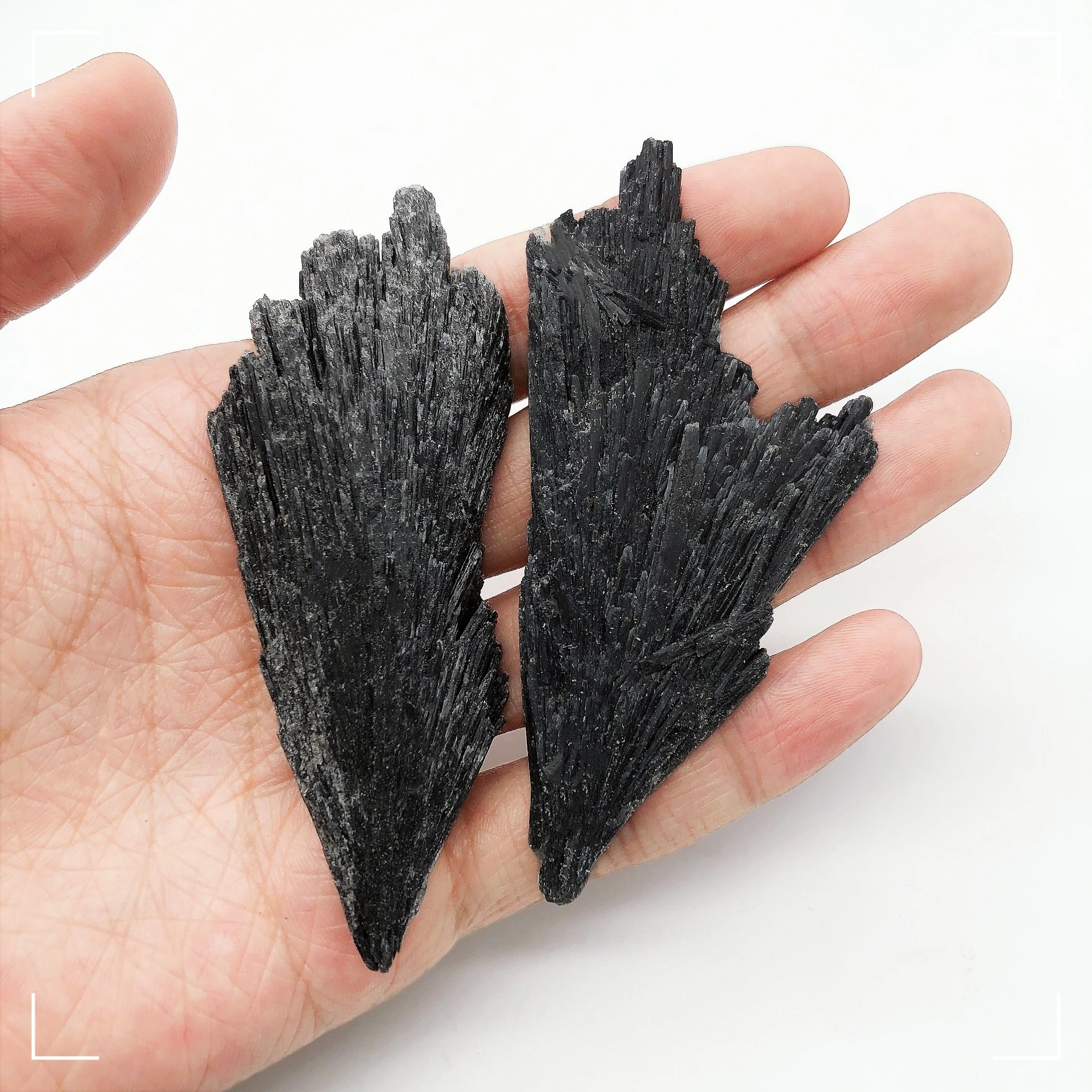 Natural Black Tourmaline Angel Feather Fan Rough Raw Stone Specimen Witches Broom Crystal Quartz Reiki Healing Home Decor Gift