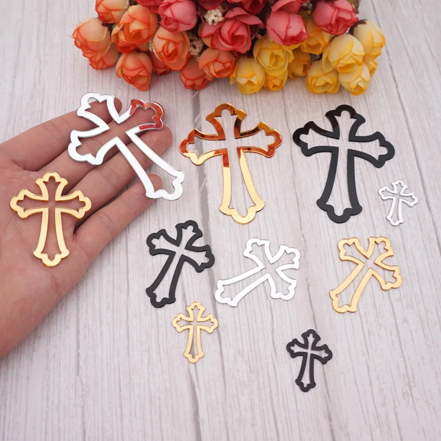 50pcs/Lot 8cm/5cm /3cm Height Hollow Out Cutting Mirrored Cross Shape Acrylic Sticker DIY Christening Home Decoration