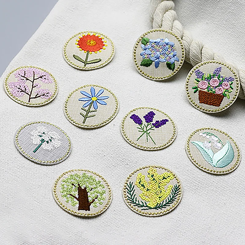 1 Piece Diameter 4.2CM Embroidery Flower Iron on Round Patch Cartoon Stickers for Clothes Bag DIY Decoration Applique