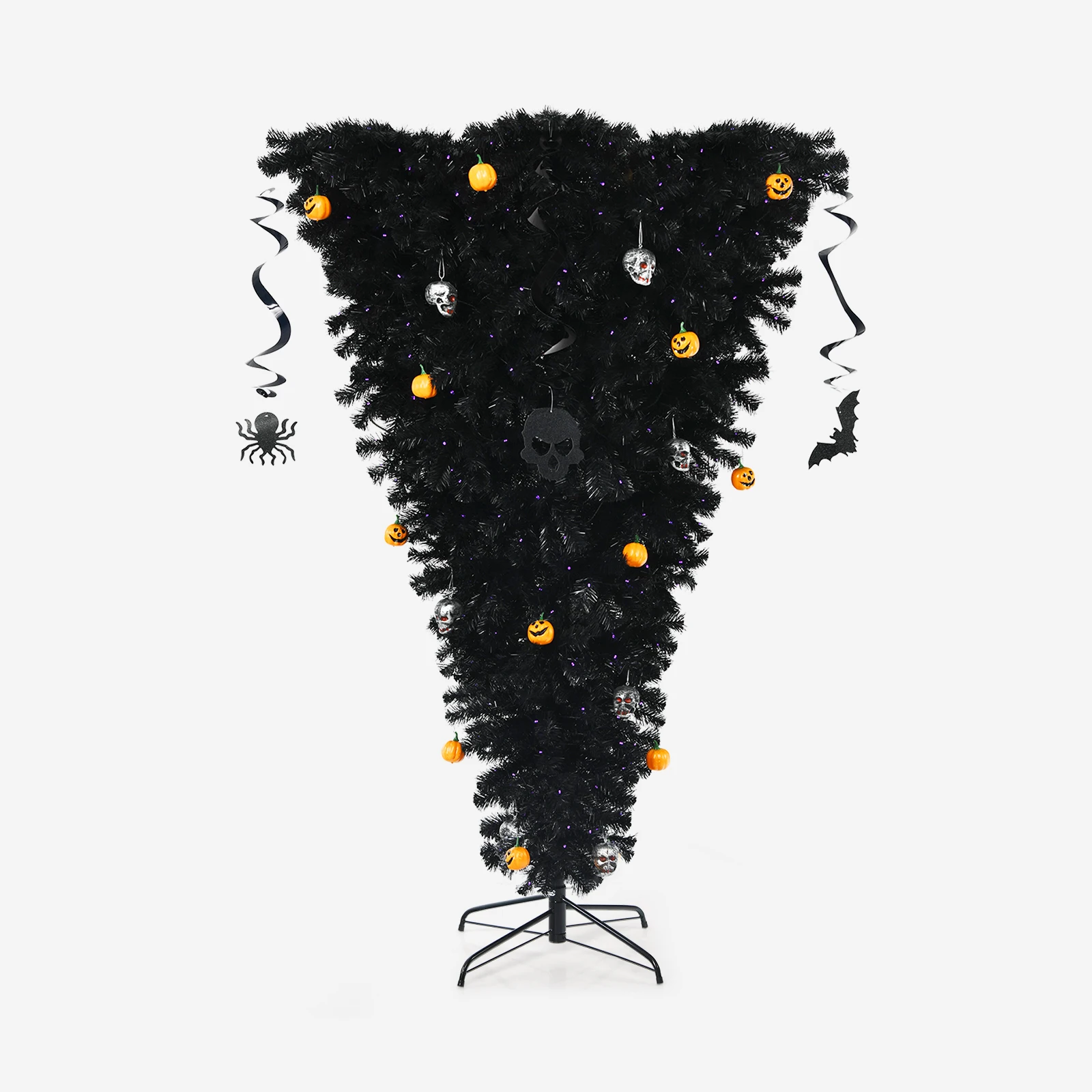6FT Upside Down Pre-lit Christmas Tree, Holiday Decoration Tree for Home, Office, School, Scary Theme Party, Black