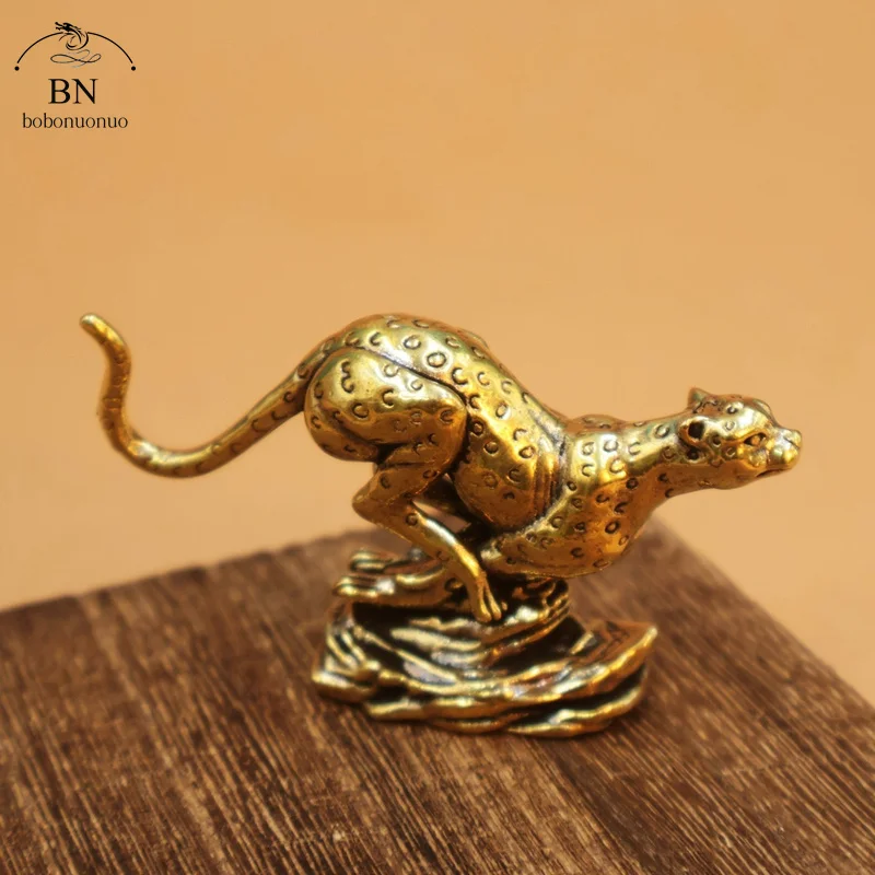 Brass Cheetah Small Statue Desktop Ornaments Solid Metal Animal Leopard Figurines Miniatures Home Decorations Crafts Child Gifts