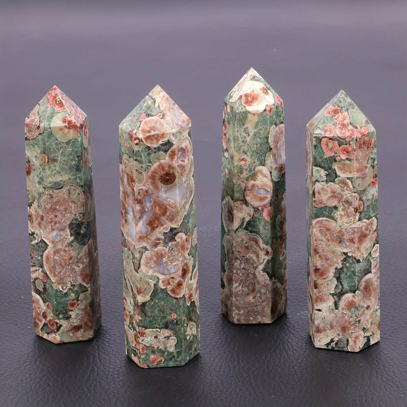Natural Crystal Pillar Green Cherry Blossom Agate Pillar Crystal Single Pointed Hexagonal Ornament Suitable For Mother's Day
