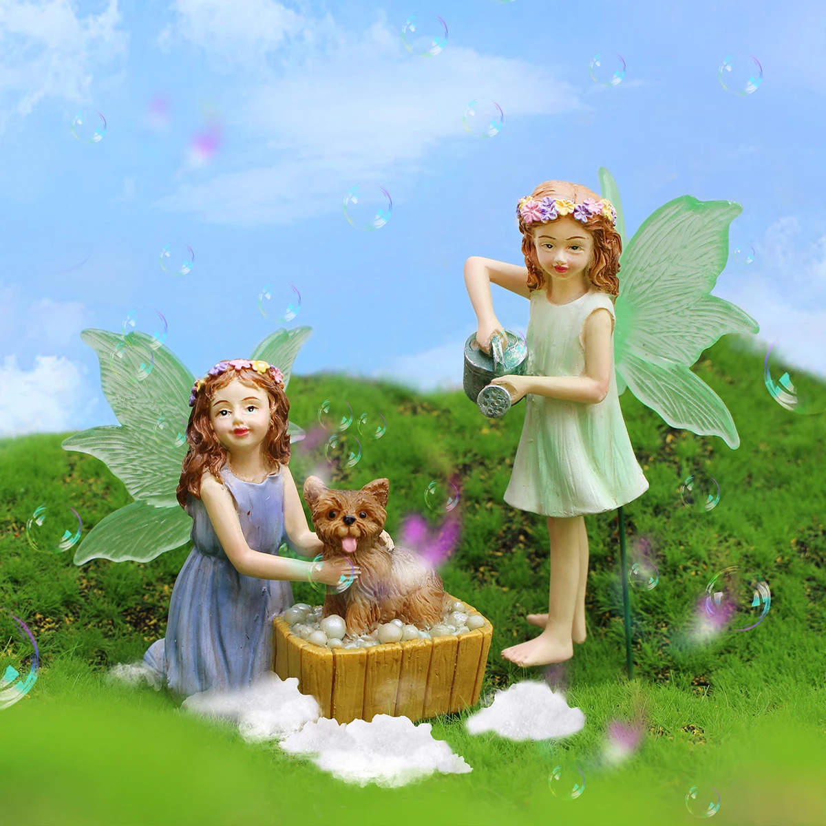 1set Bathing The Puppy Fairy, micro landscape decoration in flower pots, Resin Statue Art Craft, Creative Angel Garden Crafts, For