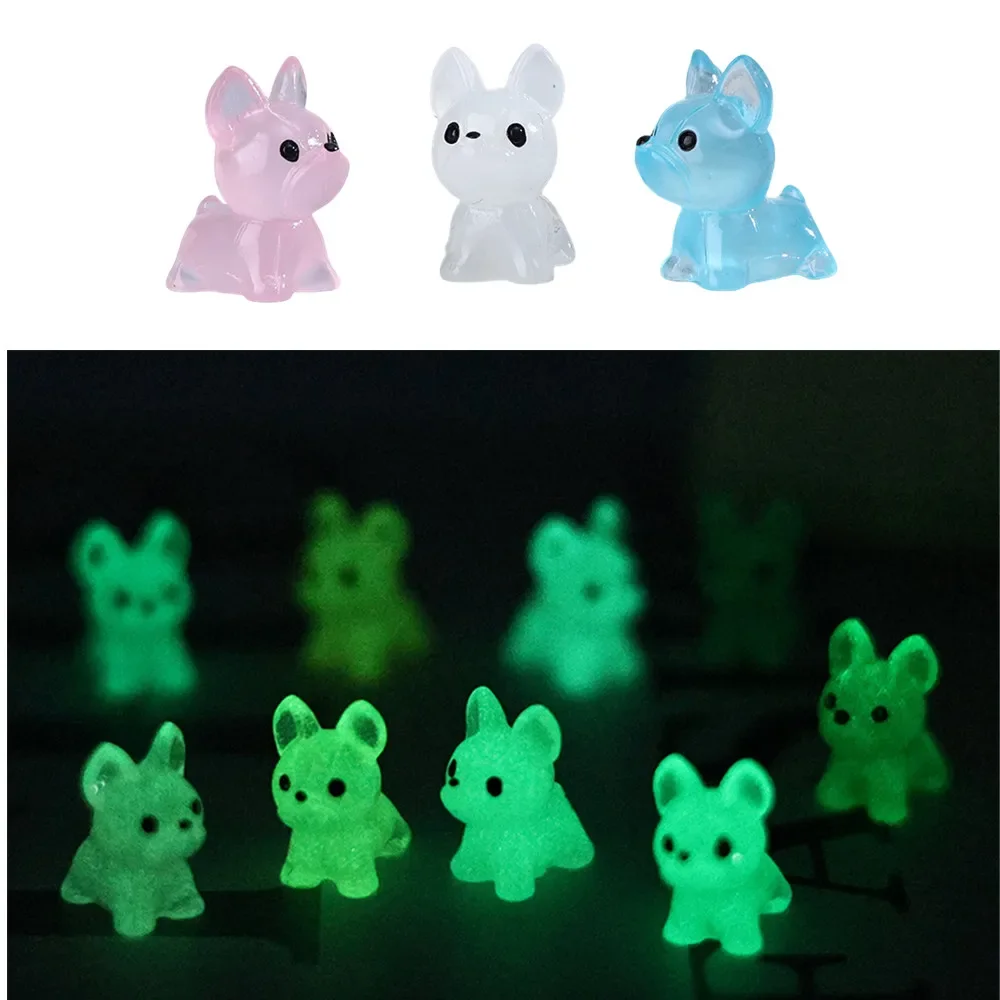 50PCS Luminous Mini French Bulldogs Home Decor Miniature Bulldog Fairy Garden Decoration Dog Figurine The Dollhouse Accessories