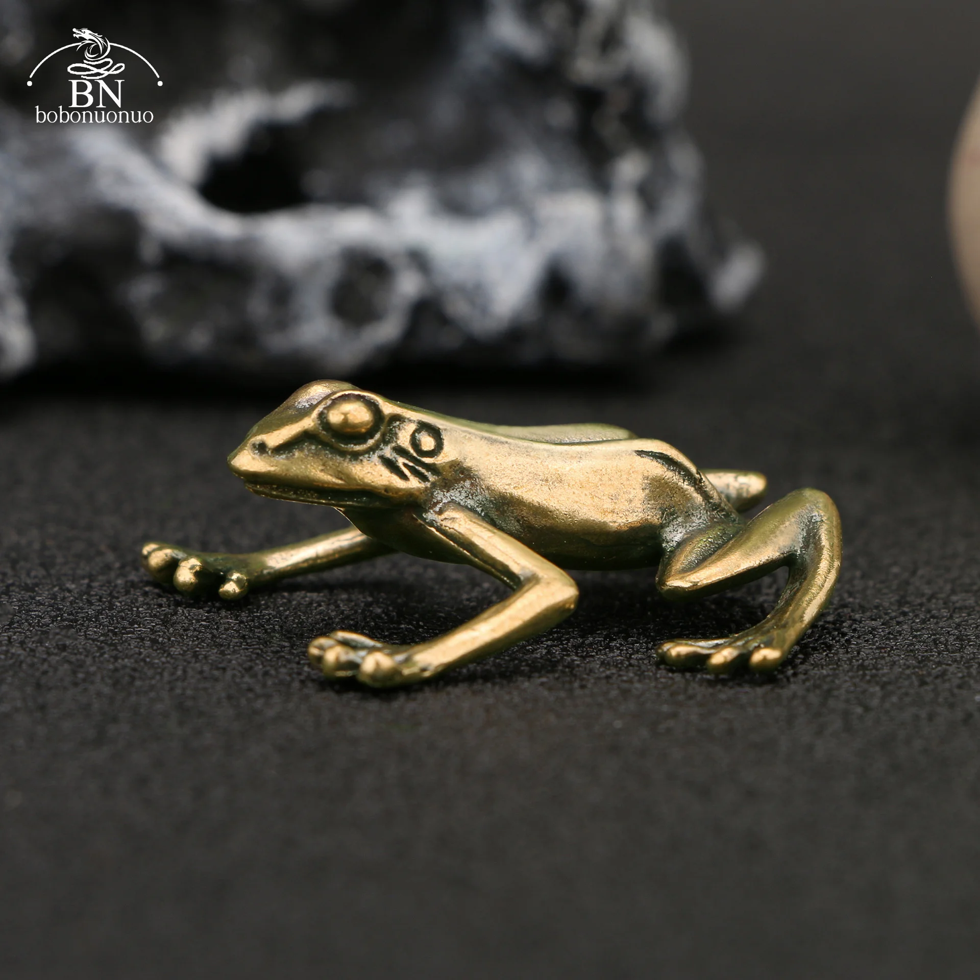 Brass Small Frog Miniatures Figurines Vintage Handmade Copper Animal Ornaments Home Decor Living Room Desktop Decorations Crafts
