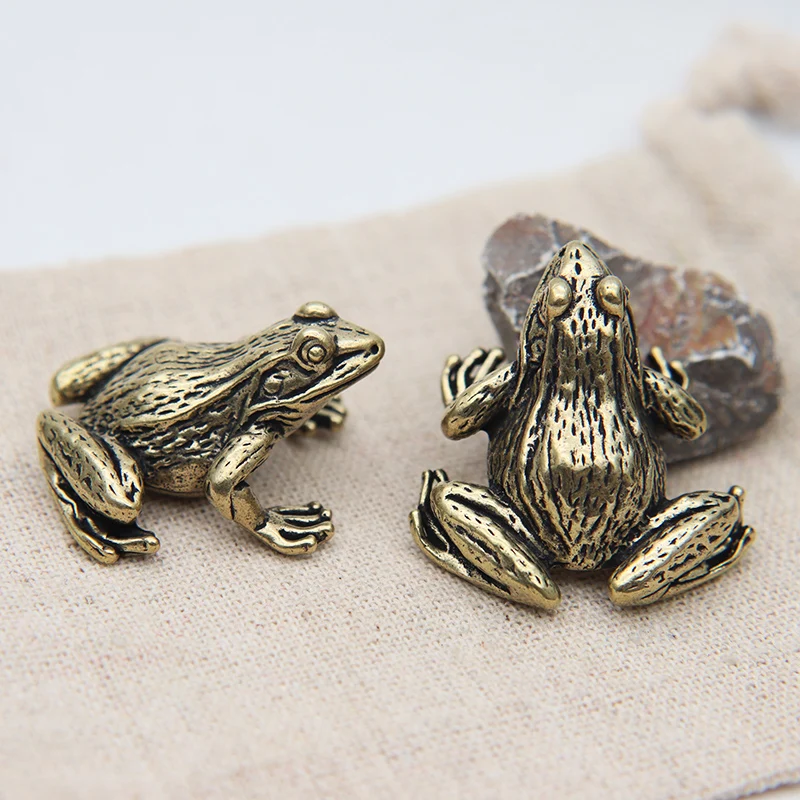 Metal Brass Frog Miniature Figurine, Desk Decorations, Vintage Cute Small Animal Tea Pet Ornament, Home Decor Crafts Accessories