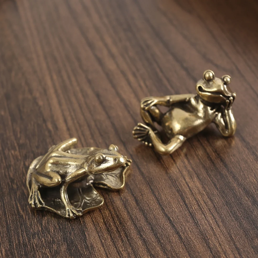 Brass Frog Sculpture Mini Lotus Leaf Decor Vintage Animal Figurine Pure Copper Tea Pet Gift Home Garden Ornament Antique Craft